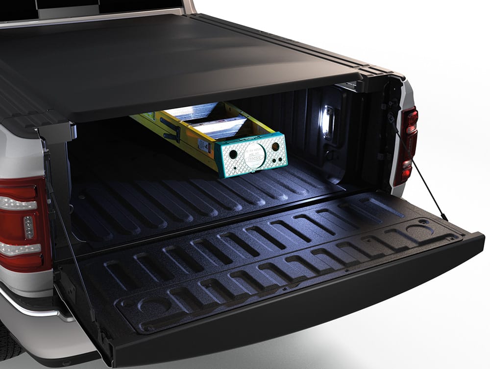 The truck bed's rear has a 115-Volt/400-Watt bed outlet that helps to power your tools, equipment, and gadgets while you are out in the wild in Cedar Hill and Mansfield. The truck also has two lockable storage bins with LED lighting to allow you to store your private and valuable items safely.