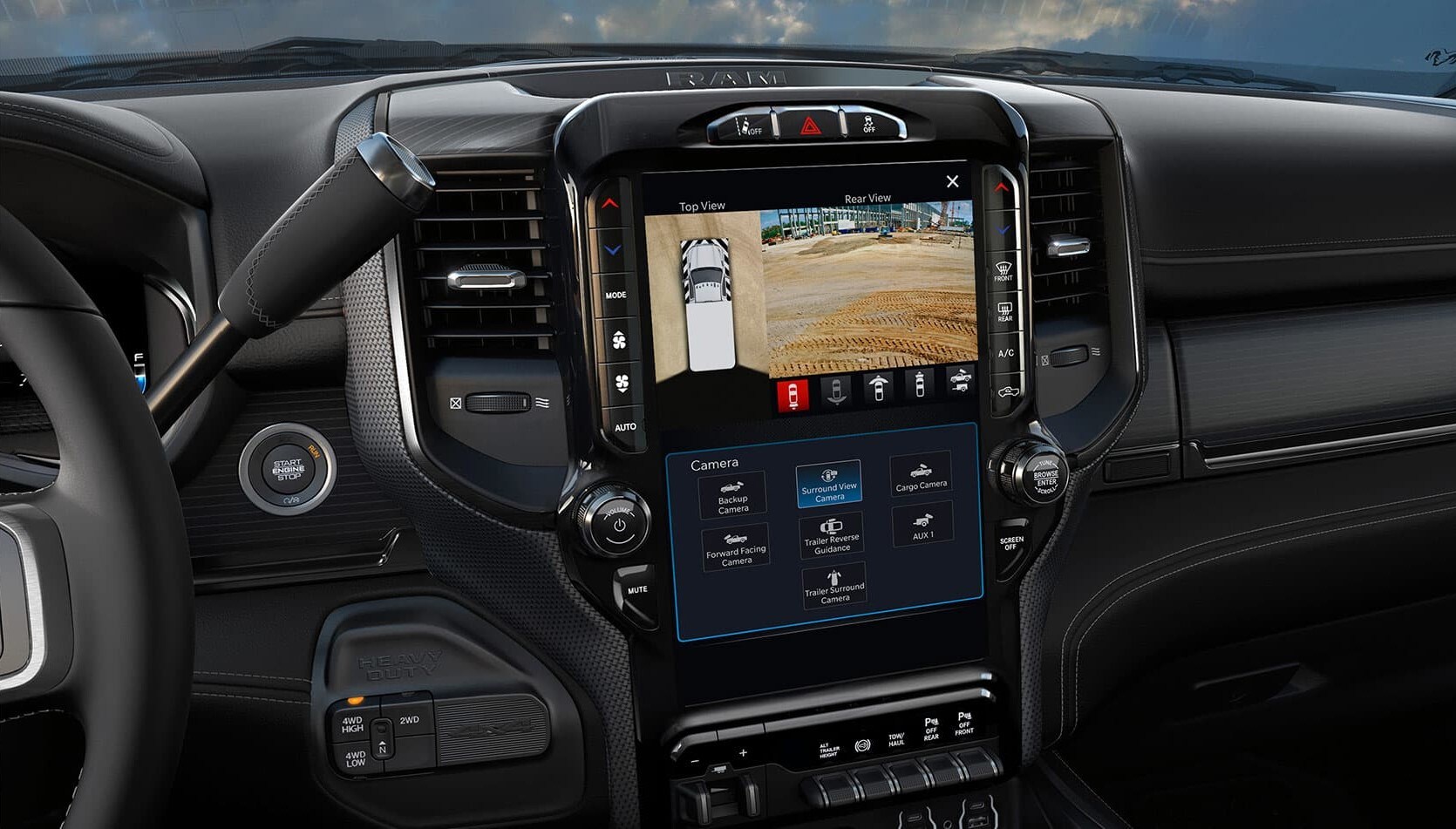 You can connect your phone to the Uconnect 12-inch touchscreen using wireless Apple CarPlay and Android Auto. The available 12-inch driver information digital cluster display shows navigation information, safety alerts, trailer light check, trailer brake status, and other essential vehicle statistics.