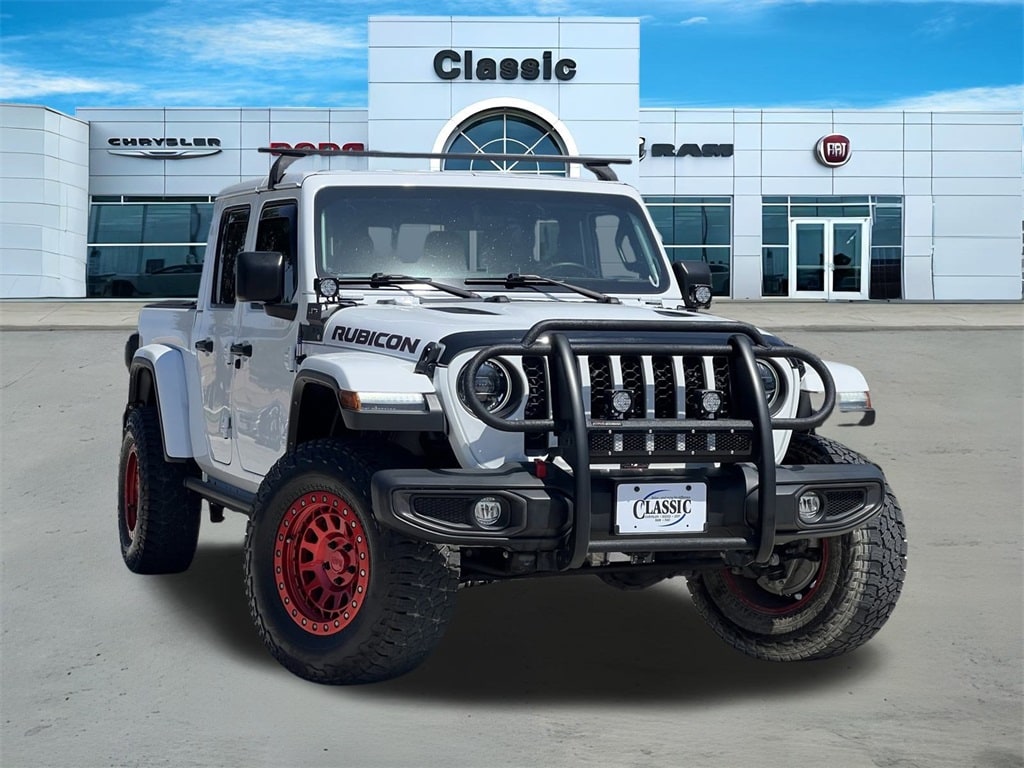 Gladiator Rubicon, 4D Crew Cab, 3.6L V6 24V VVT, 8-Speed Automatic, 4WD, Bright White Clearcoat, Black Leather. Stroll on down and get acquainted with our new Chrysler Jeep Dodge Ram Fiat Dealership serving Fort Worth, Dallas, Plano, White Settlement, Weatherford, Hurst, Arlington, and Benbrook. Clean CARFAX.
