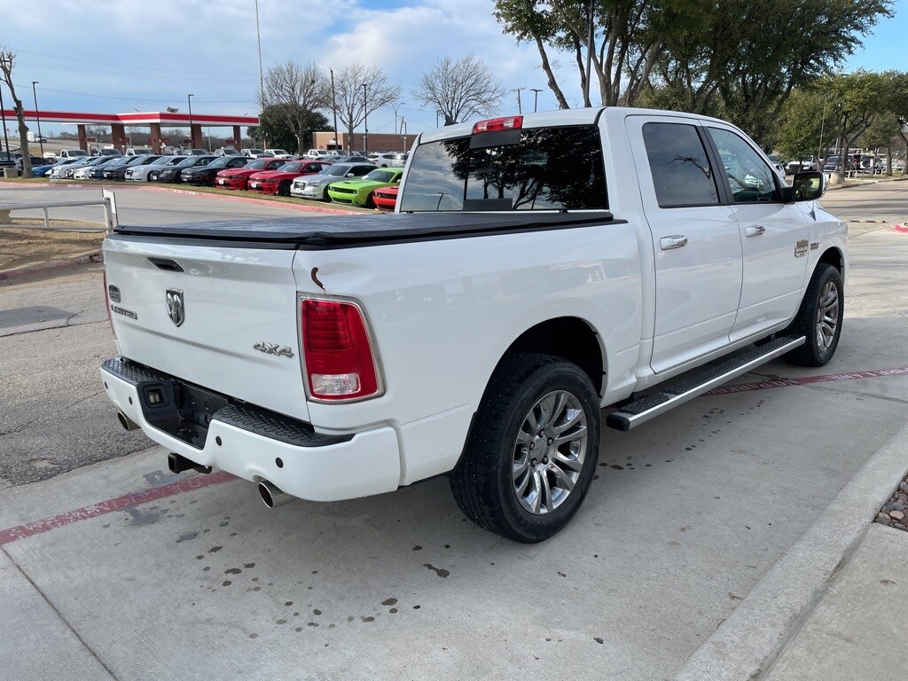 1500 Laramie Longhorn, 4D Crew Cab, HEMI 5.7L V8 Multi Displacement VVT, 8-Speed Automatic, 4WD, Bright White Clearcoat, Black Interior Leather, 115V Auxiliary Power Outlet, Auto High Beam Headlamp Control, Body Color Front Fascia, Body Color Rear Bumper w/Step Pads, Bucket Seats, Delete Ram 1500 Badge, Folding Flat Load Floor Storage, Heated Front Seats, Heated Second Row Seats, Heated Steering Wheel, High Back Seats, Keyless Enter-N-Go, Laramie Limited Cluster, Laramie Limited Group, Laramie Limited Leather Bucket Seats, Leather Wrapped Grab Handle, Limited Badge, Luxury Door Trim Panel, Luxury Front & Rear Floor Mats, Navigation System, Power 10-Way Memory Driver & 6-Way Passenger Seats, Quick Order Package 26M Laramie Limited, Rain Sensitive Windshield Wipers, Rear 60/40 Split Folding Seat, Rear Window Defroster, Remote Proximity Keyless Entry, Steering Wheel Mounted Audio Controls, Ventilated Front Seats, Wheel to Wheel Side Steps, Wheels: 20" x 9" Aluminum Paint/Chrome Inserts, Wood/Leather Wrapped Steering Wheel. Awards: