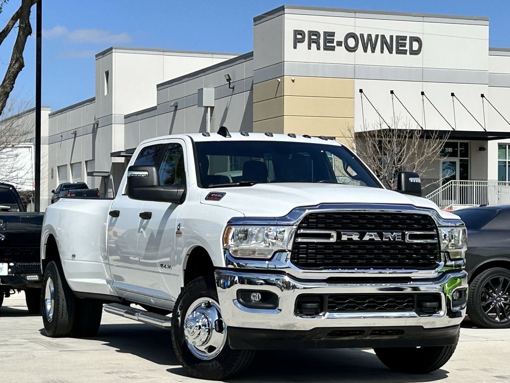 3500 Big Horn, 4D Crew Cab, Cummins 6.7L I6 Turbodiesel, 6-Speed Automatic, 4WD, Bright White Clearcoat, Diesel Gray/Black Cloth, 2 Way Rear Headrest Seat, 2nd Row In Floor Storage Bins, 4 Way Front Headrests, 40/20/40 Split Bench Seat, 4G LTE Wi-Fi Hot Spot, 8.4" Touchscreen Display, All R1 Low Radios, All Radio Equipped Vehicles, Apple CarPlay, Auto Power-Folding Mirrors, Black Exterior Mirrors, Bluetooth Handsfree Phone & Audio, Center Hub, Connectivity - US/Canada, Dual Glove Boxes, Exterior Mirrors Courtesy Lamps, Exterior Mirrors w/Heating Element, Exterior Mirrors w/Supplemental Signals, Foam Bottle Insert (Door Trim Panel), Footwell Courtesy Lamp, For Details Visit DriveUconnect.com, For More Info, Call 800-643-2112, Forward & Reverse Utility Lights, Front Armrest w/Cupholders, Front Center Seat Cushion Storage, Front Fog Lamps, Front Seat Back Map Pockets, Global Telematics Box Module (TBM), Glove Box Lamp, Google Android Auto, GPS Antenna Input, Integrated Center Stack Radio, Integrated Voice Command w/Bluetooth, Leather Wrapped Steering Wheel, Level 1 Equipment Group, Locking Lower Glove Box, Manual Adjust 4-Way Front Passenger Seat, Mirror Running Lights, Power Adjust 8-Way Driver Seat, Power Adjust Mirrors, Power Heated Fold Telescopic Mirrors, Power Telescoping Mirrors, Power-Adjustable Convex Aux Mirrors, Premium Cloth 40/20/40 Bench Seat, Quick Order Package 2HZ Big Horn, Radio: Uconnect 5 w/8.4" Display, Rear 60/40 Folding Seat, Rear Dome w/On/Off Switch Lamp, Remote USB Port - Charge Only, Selectable Tire Fill Alert, SiriusXM Radio Service, SiriusXM Satellite Radio, Steering Wheel Mounted Audio Controls, Storage Tray, Wheels: 18" x 8.0" Polished Aluminum. Best Experience! No Haggling, No Tricks, No Games, Transparent, Hassle Free Environment!